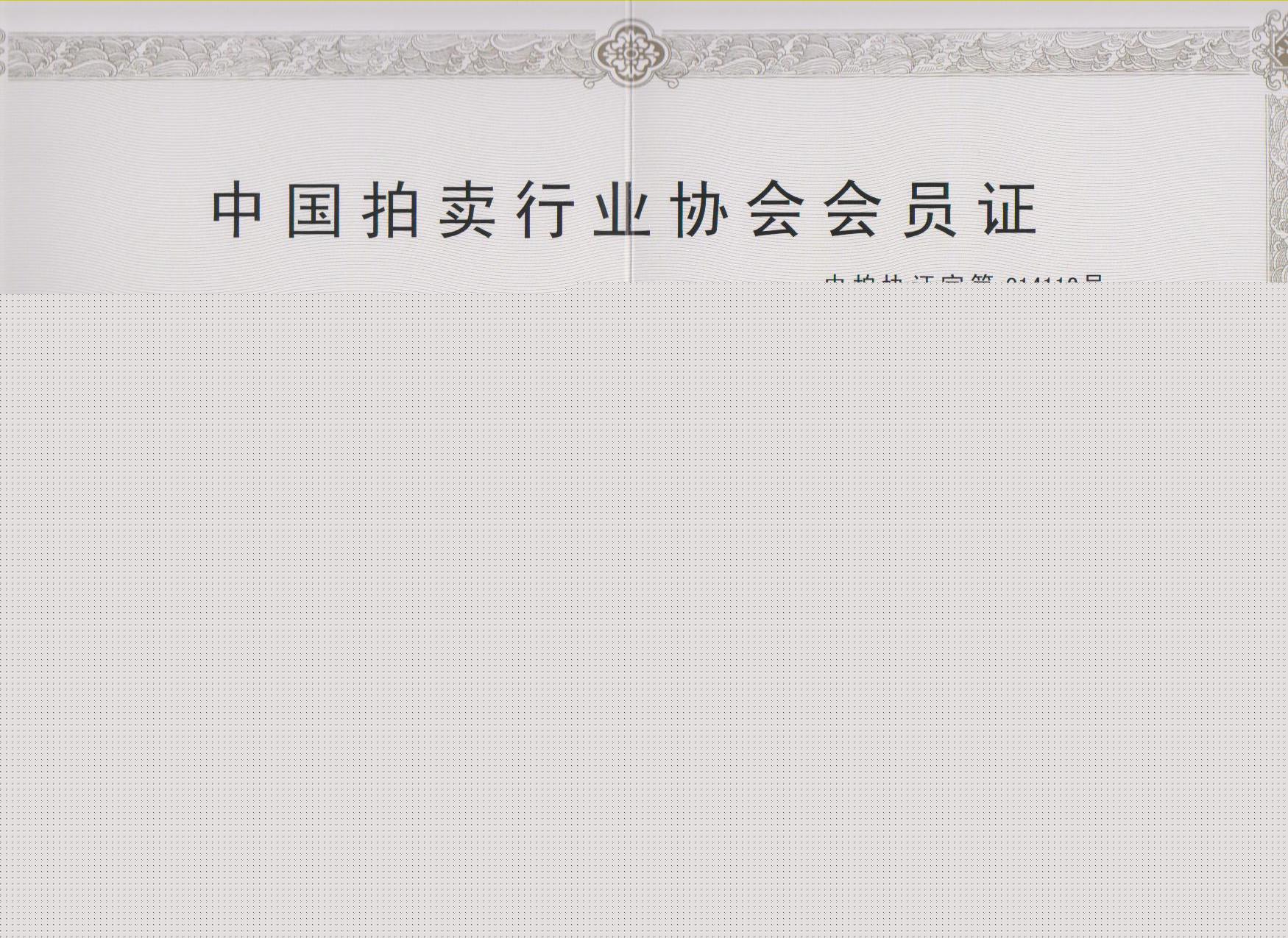 中国拍卖行业协会会员证书